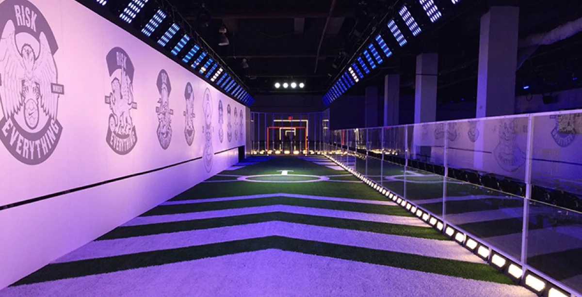 As part of the #RiskEverything campaign leading up to the 2014 World Cup, Nike conceived of the Hall of Phenomenal, a 6-day experiential marketing event in NYC. We (Incredible Machines), developed an installation that involved guests dribbling a ball down a constructed green, shooting on goal, while a sensor-activated rig of 120 networked DSLR cameras captured a “bullet-time” effect of their performance.