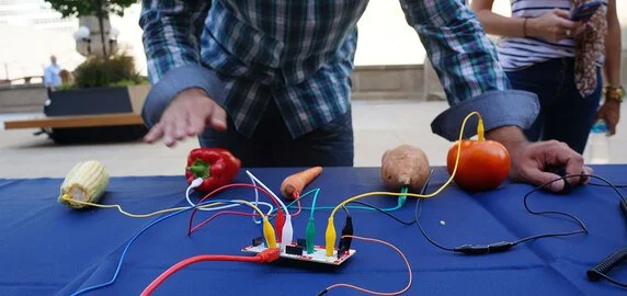 As part of the community events, we also created some unique activities, one of which was a capacitive touch-driven vegetable synthesizer.