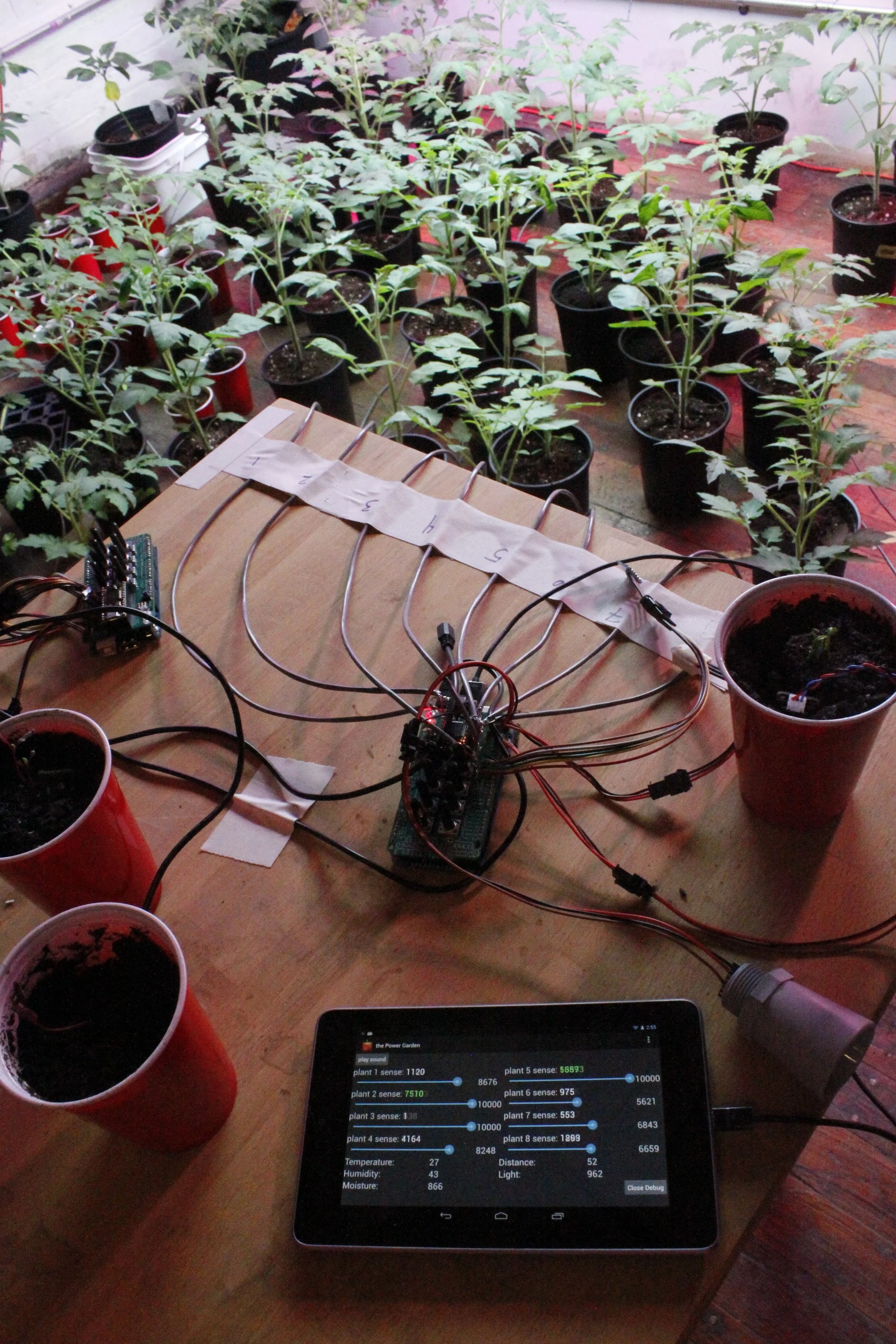 A native Android application running on several tablets installed around the garden which would play audio cues when capacitive touch sensors would trigger with audience interaction of the plants.